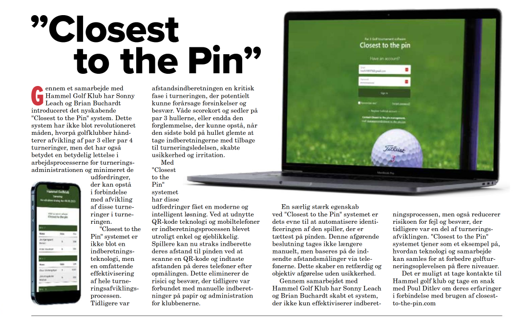 Siden vi indførte Closest to the Pin / Tættest på flaget softwaren i vores golfklub, har vi sparet mange arbejdstimer på hver turnering og reduceret vores administrative omkostninger markant. Opsætningen af en turnering tager under 1 minut så er det nemt for medlemmerne og besøgende at bruge- og resultaterne er live og klar, så snart runden er slut.