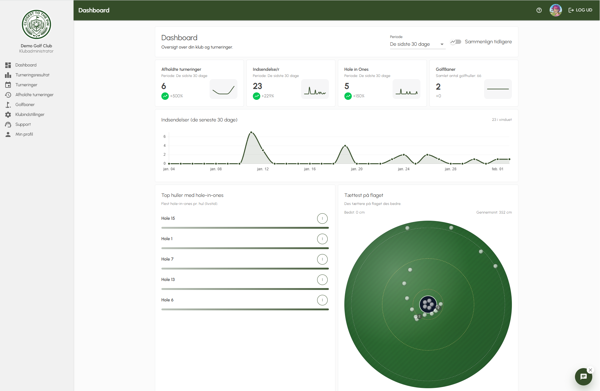 Kom i gang uden besvær. Opret klubben på få minutter og få adgang til en enkel, professionel løsning til håndtering af Closest to the Pin-turneringer. Ingen installation, ingen teknisk kompleksitet – bare log ind opsæt turneringen.